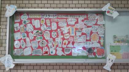新年あけましておめでとうございます。今年度は11日が始業式となり、いつもより遅いスタートですが、今年もどうぞよろしくお願いします。1月の玄関掲示は4年生が中野小学校を盛り上げるマスコットを考えてくれました。今年も子どもたちが元気で学校を盛りあげていくことを楽しみにしています。