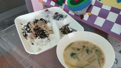 昨日は季節献立で、お正月に合わせて、 雑煮、ごまめ、れんこんのちらしずしでした。白みそ仕立ての関西風の雑煮でした。