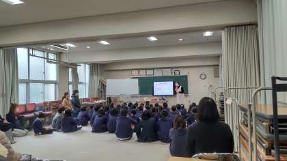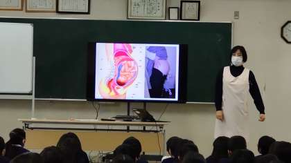 昨年度は大阪レッドステージが出ていたので開催できなかった「いのちの授業」を今年は何とか実施することができました。助産師の方のお話で心に残ったのは、生まれてくる赤ちゃんのことをみんなが待っていたこと、また、出産するお母さんと生まれてくる赤ちゃんのことを応援していること。生まれてきた赤ちゃんを見つめているお兄ちゃんの笑顔の写真。本当に大切な大切な命なんだということを写真やお話を聞いていて思いました。お腹に赤ちゃんがいるお母さんの疑似体験をしてみて、足元が見えにくかったり、下のものを拾うのも腰を下ろして拾わないといけなかったり、何せ重いので腰がいたくなったりとお母さんの大変さを知ることができました。今日の勉強を通して生まれてきた奇跡の自分を大切に、周りの人も大切にできる人になってほしいと願います。