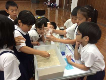 ろ過の実験もさせてもらって、子どもたちは夢中になって取り組んでいました。このあとはどうなるんだろう?と、とてもいい顔をしていました。