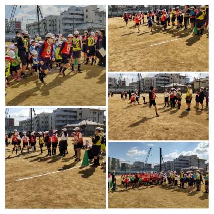 今年も大川でのランニングフェスティバルは、行えず、校内ですることになりました。1年生にとって友だちが8周走るのを数えるのは難しいので、6年生が1年生が、がんばれるように応援しました。先頭をペースメーカーになって6年生が走り、1周するごとに背中にシールを貼りました。後1周と声をかけてもらって最後の力を振り絞って走る子もたくさんいました。終わったあとは、みんな笑顔でした。6年生ご苦労さま!
