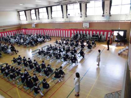 入学式の様子です。担任の先生や1年生に関わる先生、保健の先生を紹介しているところです。