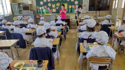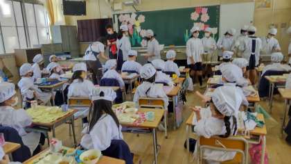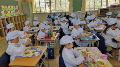 給食は、6年生が運んでくれ配膳もしてくれています。昨日もたくさんおかわりしたこもいました。今日の給食はどうだったかな?