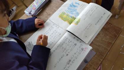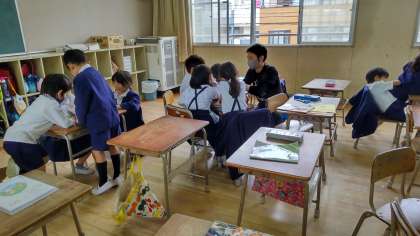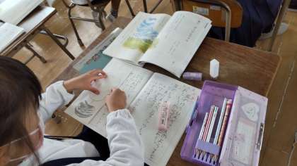 国語(風のゆうびんやさん)、生活科(学校たんけんの看板に何を描くか相談しています)