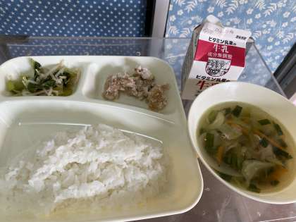 4月19日(火)給食 公開日 2022/04/19 更新日 2022/04/19 給食 今日の給食は、鶏肉のからあげ、中華スープ、チンゲンサイともやしの甘酢あえです。 今日は中華メニューです。 いいね(0)