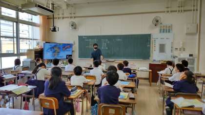 図工(自分の名前をデザインしています)、社会(〇〇地方と日本は、いくつに分かれてるかな?)