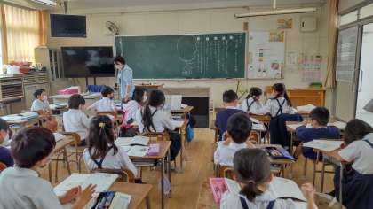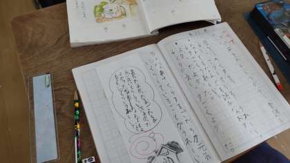 国語(おじいさんが孫から手紙をもらって喜んでいる場面の吹き出しにおじいさんになっておじいさんの気持ちを書きました)