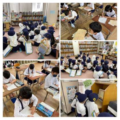 都島図書館では、図書館の歴史や、施設内の説明をしていただきました。子どもたちもそれを真剣に聞き、メモを取ることも頑張りました。