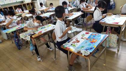 国語(自然のかくし絵を段落ごとにまとめました)図画工作(先週の続きです。パスが終わったので、絵の具で色を付けています)理科(モンシロチョウの飼いかた)さなぎが大きくなりました。