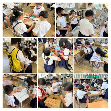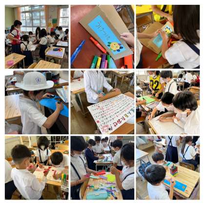 今日は6月7日のなかのまつりのお店のPRでした。各班の出し物を紹介しました。2時間目は、最後の準備です。どの班もみんなに楽しんでもらえるよう協力しています。