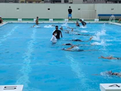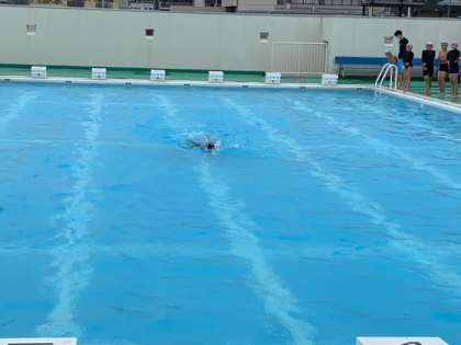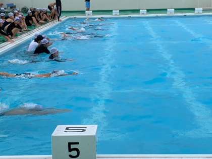 今日、5,6年生は元オリンピック選手の千葉すずさんとの水泳学習でした。昨年度も来ていただいたので以前に学習したことの復習から学習が始まりました。クロールの腕のかきは体の遠くから水をかき始め、体の近くを通って後ろまで押し出すようにかくことを確認し、泳いでみました。「楽に泳げる」「早くなった」など思い出すだけで、泳ぎがスムーズに。意識することが大切だなと感じました。さらに6年生は中学校に向けて平泳ぎも学習し。進化した学びをすることができました。