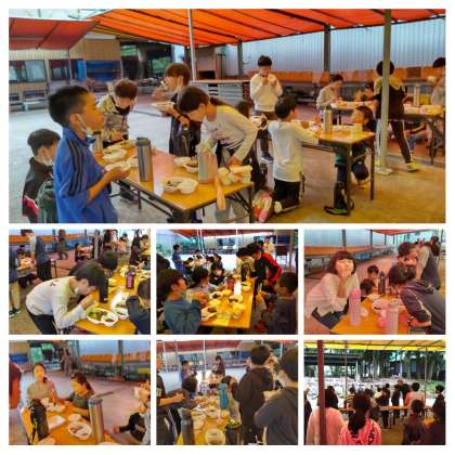 夕食のバーベキューです。まず、ピーマン、玉ねぎ、キャベツ、こんにゃく、ソーセージを焼いてから焼肉です。協力して作ったバーベキューの味は格別。残さずしっかり食べました。食後のゼリーも美味しかったです。