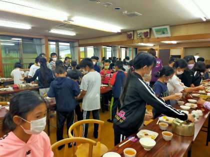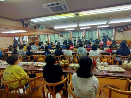部屋の片付けをしたあと、朝食です。ご飯のおかわりをしている人もいました。