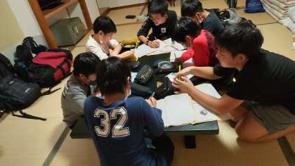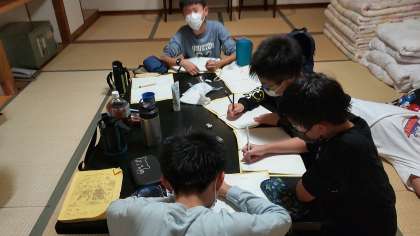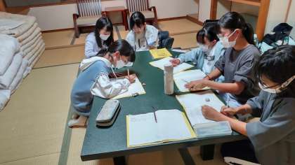 2つに分かれて入浴の時間です。待っている間に今日の日記や見学中に書けなかったところをみんなで書いています。