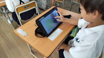 今日は、ビスケットというアプリを使って、自分のかいた絵を動かすことができることを櫻井先生に教えてもらいました。絵が動くと「わあー」という声も聞かれて夢中になっていました。