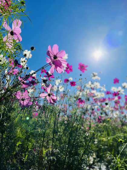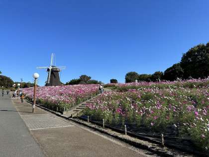 秋晴れで風車もコスモスもきれいです。巡回ポイントルフィーとチョッパーに会えたかな?