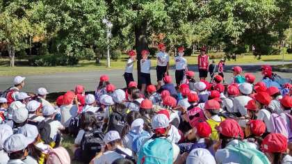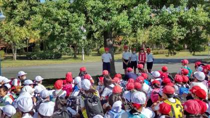 グッバイ式の様子です。帰り道の気をつけるポイントを確認して、歌のお兄さんの素敵な歌声とともに鶴見緑地とサヨナラです。