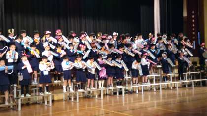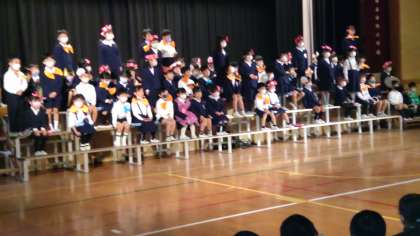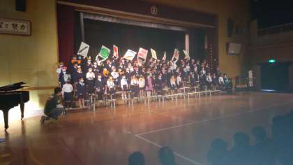 国語で学習した「サラダでげんき」をみんなで朗読劇で演じました。歌も入っていて、他学年の人も一緒に振付して見ていました。