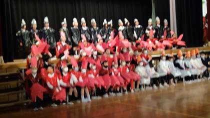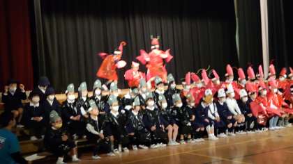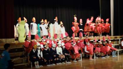 生活科で育てているザリガニをモチーフにした「ザリガニ探検隊」の劇をしました。衣装も一人ずつ思い思いに作りました。セリフもしっかり聞こえる声で話せていました。ザリガニの歌も可愛かったです。