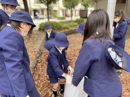 今日の5時間目、自分たちが普段遊んでいる公園や地域を掃除をしました。題して「クリーン作戦」です。地域ども会の班に分かれて、落ち葉などのごみをたくさん拾いました。