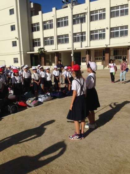 五年生の林間学習のスタートです。やったあ*\(^o^)/*めっちゃいい天気。