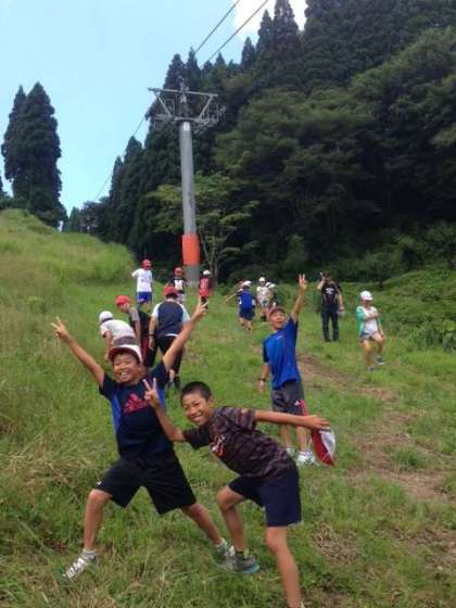 冬はスキーのゲレンデ。今日は緑がいっぱです。みんな大興奮。