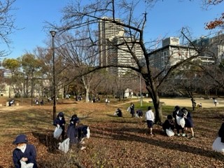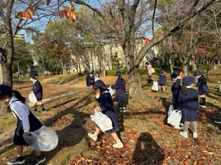 今日は、1年生で大川に落ち葉ひろいにいってきました。