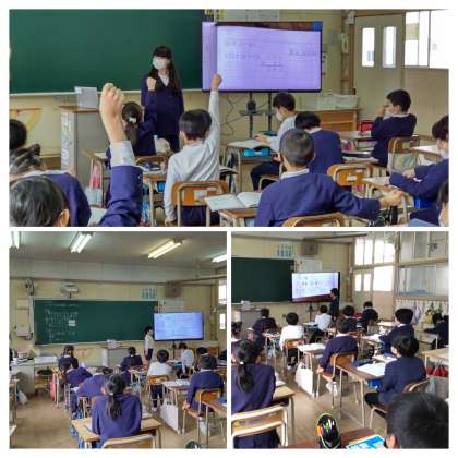 今日の算数は、「21×32の計算の仕方を考えよう」というめあてで今まで習った計算の仕方を使って計算できないか見通しを立てました。21×30と21×2に分けて考えたり、筆算で考えたり、図で考えたりと自分なりに考えた方法で解きました。その中でも筆算が便利ということで筆算の仕方をみんなで確かめ、チャレンジ問題を解きました。