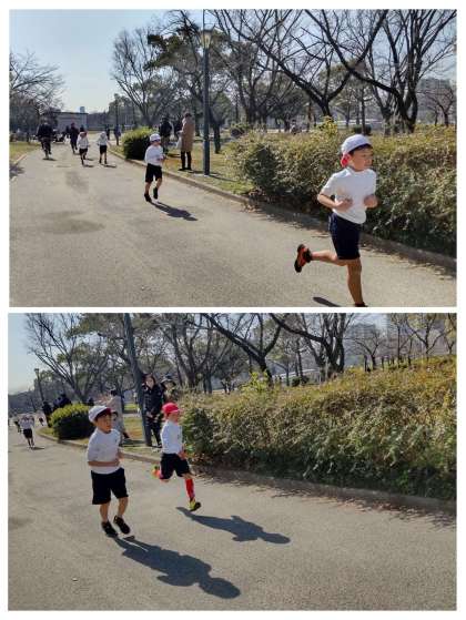 朝の気温は低かったですが、ランニングフェスティバルの時間になると日が差して少しずつ暖かくなってきました。2年生からスタートして2分後に1年生スタート。みんな最後まで一生懸命走り切ることができました。今日もボランティアでポイントに立っていただきありがとうございました。また、応援に来てくださった保護者の皆様もありがとうございました。