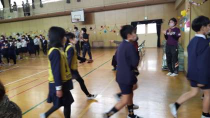 終わりのことばの中で今日の感想をみんなにインタビューをしました。「6年生がかっこよかった」「自分もみんなをひっぱる6年生になりたい」「歌も合奏も上手だった」6年生からは「みんなの歌がよかった」「サンキューカードが素敵だった」本当に心の通った会になりました。お互いに思いを伝えることができた笑顔で会場はいっぱいになりました。班の人の間を退場するときも6年生の笑顔がたくさん見られました。あと6日でお別れ。みんな6年生といっぱい遊びましょうね。児童会議メンバーを中心に1月から準備してきた「Onlyone 39 みんなのリーダー 100%スマイルフェス」は、大成功でした。