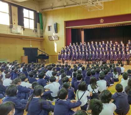 6年生が、明日の卒業式で歌う歌「最後のチャイム」をぜひ下学年の人に聞いてもらいたいと急遽、集会で披露してくれました。子どもたちの6年間の思いが詰まった合唱は、講堂に響いて素晴らしかったです。明日、みんな元気で登校してくださいね。教職員みんなで待っています。