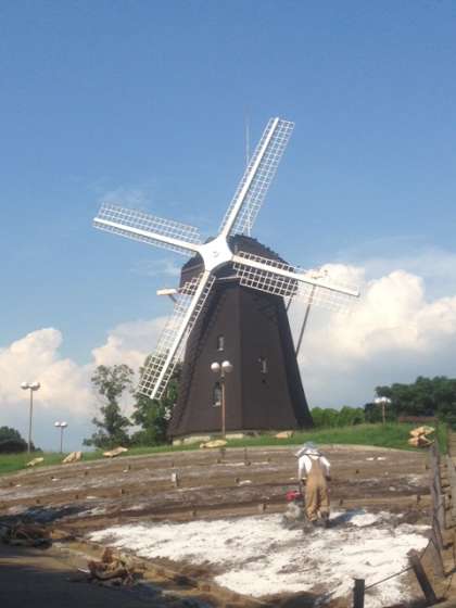 どこをポイントにしようかと今日は、下見、探索です・・・。ポイント、ゲームの内容は、もちろん、遠足まで秘密です。  風車の下の花壇、当日は、コスモスが満開とか。
