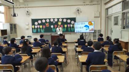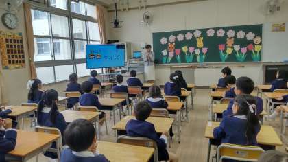 4月7日、あいにくの雨模様でしたが、元気な1年生が64名本校に入学しました。教室では、担任の先生の名前やペットなどクイズで子どもたちは緊張もほぐれて楽しそうにしていました。10日から登校班で元気に登校してくださいね。1年生が来てくれるのをみんなで楽しみにしています。朝、門のところで待っていますね。