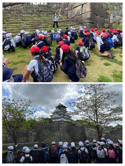 そして、大阪城の天守閣へ!天守閣では、委員会ごとにグループ活動をして、展示を見ました。これから始まる歴史にまた興味をもった様子でした。