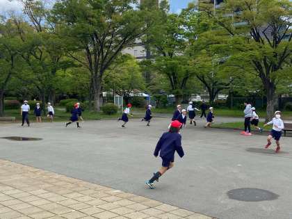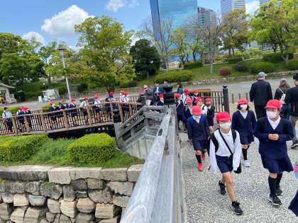 たてわり班遠足の下見も兼ねて、大阪城公園へ出発ーー