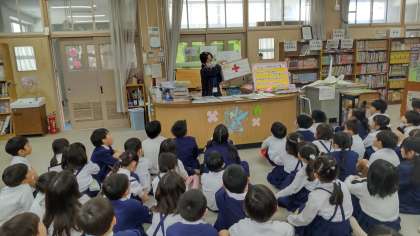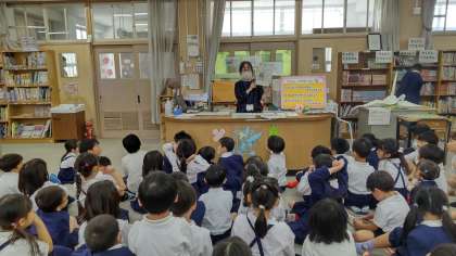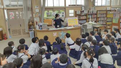 今日は、学校司書の川田さんから学校図書館の使い方を教えてもらいました。図書室での3つの約束