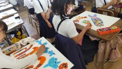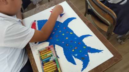 この間遠足で行った海遊館で見たいきものを絵にしました。