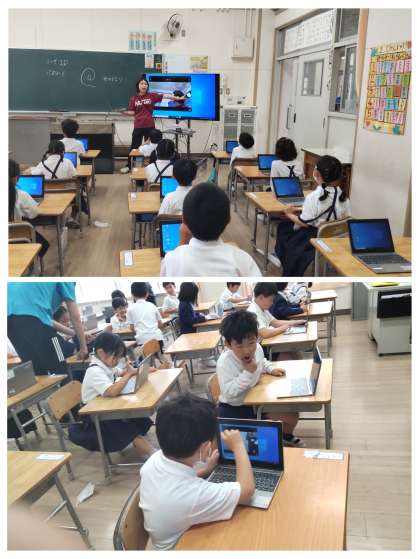 タブレットをはじめて使いました。自分でユーザーIDやパスワードを入力しました。ようこそ○○さんと画面に出ると喜んでいました。今日はカメラで自分や友だちを撮りました。撮るときは必ず相手に「撮っていいですか?」と聞くことも学習しました。