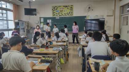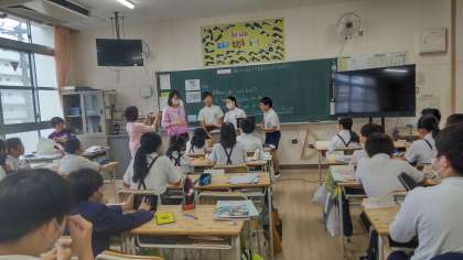 今日はどこに住んでいるかを友だちの場所も覚えて次の人に回していくゲームでした。1番の人は自分だけですが5番目の人は5人分覚えないといけません。見本をしてくれた友だちを見て列ごとに練習しました。次はどの班が一番速くできるか竸います。