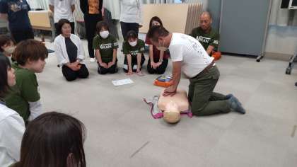 6月5日から始まるプールでの学習を前に教職員で救命救急講習を受けました。心肺蘇生とAEDの使用についての講習でした。とにかく躊躇することなく行うことが大切だということ、AEDで救える命がたくさんあること、救急車が来るまでにできることをすること、水の事故をゼロにするためにもしものことがあっても協力して動けるようみんなで学びました。