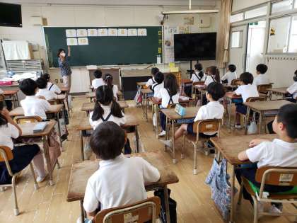最初に、キャスリン先生と「はじめまして」と自己紹介。みんな上手に会話しました。