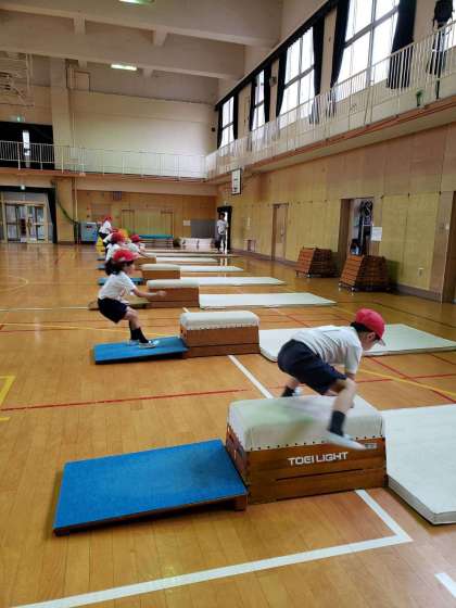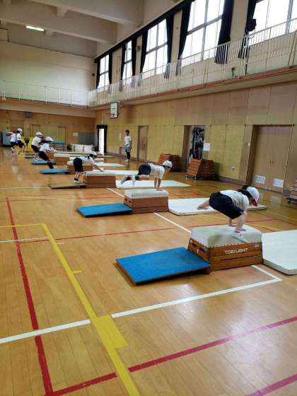 ジャンプの仕方、手のつき方、空中姿勢など基本を学習しました。