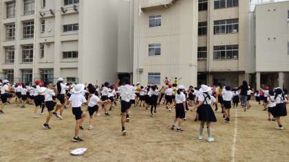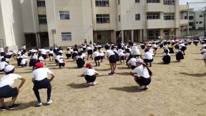 きょうのたてわり集会は、運動委員会の人がリードして班で難しいところを教え合いしながら中野っ子体操を全校でしました。体育の時間や運動会でもするのでみんなで頑張って体操しましょう。。