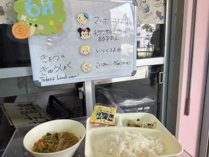 今日の給食は、マーボーはさめ、チンゲンサイともやしの甘酢あえ、いり黒豆です。