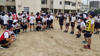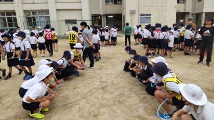 今日は、班みんなで協力して他の班とじゃんけんをしました。みんなで一斉に出したり、みんなで相談したりで班のみんながまた一段となかよくなったかなと思います。土曜日のなかのまつりも協力して楽しんでくれると思います。
