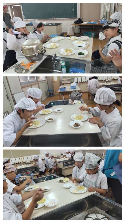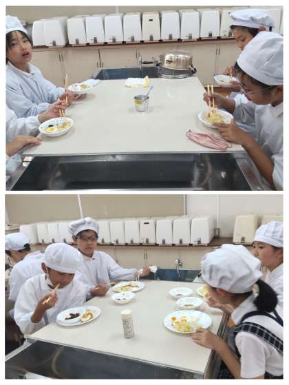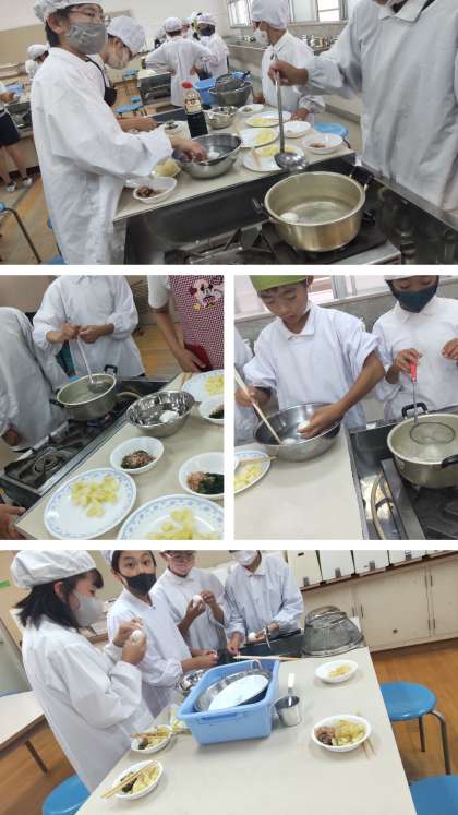 今日は2組が調理実習でした。卵の茹で時間をそれぞれ好みに合わせて変えている班もありました。「お母さんの大変さがわかった」「じゃがいもの茹で時間を伸ばしたらほくほくになった」ほとんどの子どもたちからは「美味しい!」という声が聞かれました。みんなで協力して楽しく実習できました。