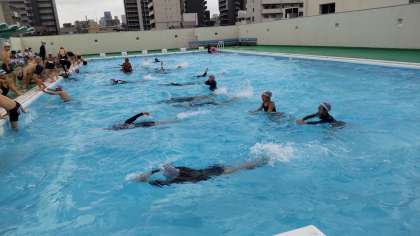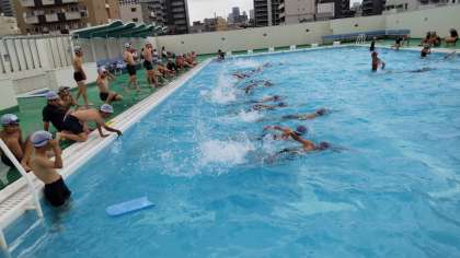 6年生は水慣れ、クロールのあと、クロールの掻く手と平泳ぎの足をなるべく少ない回数で25m泳ぐ泳力測定をしました。平泳ぎの足を11回で泳いだ人がいてびっくりしました。力を抜いてゆったり泳ぐよう練習していきます。