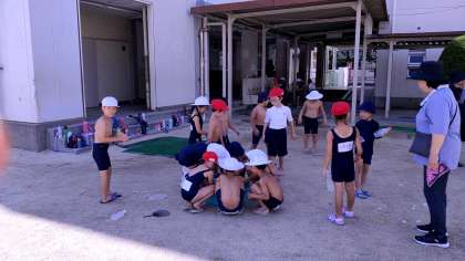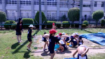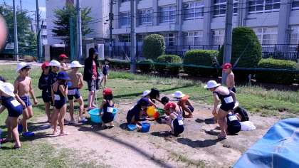 1学期もいよいよ最終週を迎えました。夏本番を前に1年生は朝から水遊びをしていました。次の時間がプールの時間ということもあり、濡れても大丈夫。みんな楽しそうに「夏の笑顔」を見せていました。