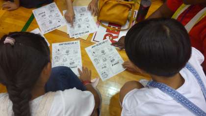 今日は、大阪市教育委員会主催のイングリッシュデイが浪速スポーツセンターで行われ、5年生が二人参加しました。C-NETとたくさん話せて、楽しかったようです。クイズあり、ダンスあり、おりがみありで他校の人とも協力してがんばりました。英語でいっぱい話せた有意義な機会となりました。