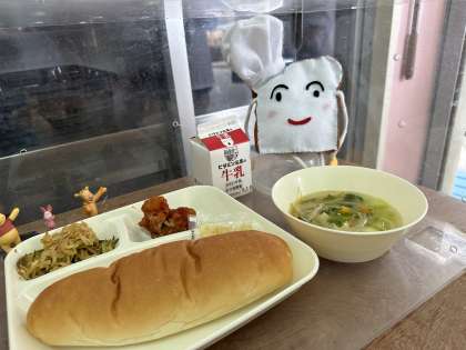 今日のの給食は、ヤンニョムチキン、とうふのスープ、切干しだいこんのナムルです。